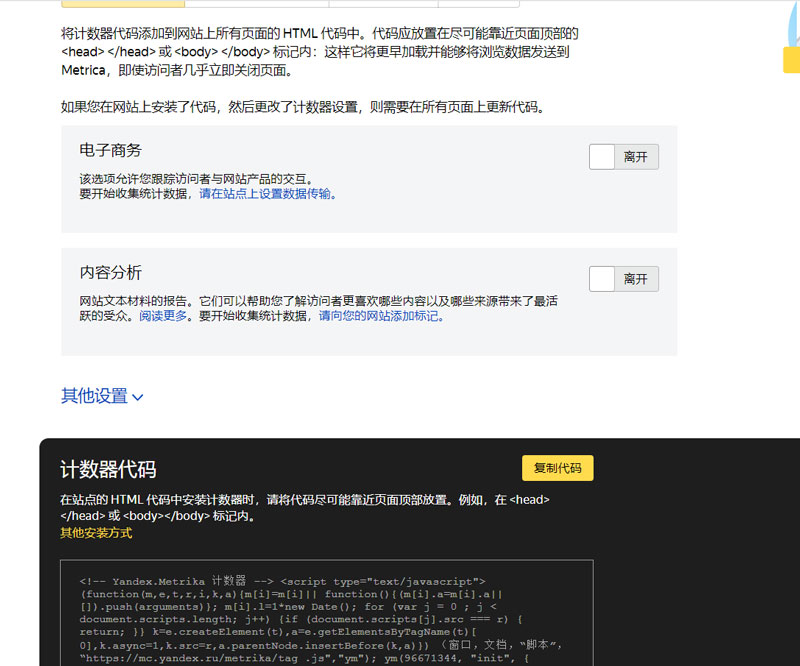 如果您改變 Yandex.Metrica 代碼設置,那么您將需要更新放置在您網站上的代碼。(請見下圖所示)