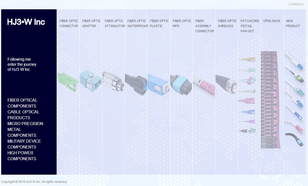 HJ3.W Inc company was founded in 2003 and is a high-tech enterprise specializing in the R&D, manufacture and sale of fiber optic components and accessories. Our products are widely applied to fiber optic communication, communication, watch, electron microwave, semiconductor and medical industries.