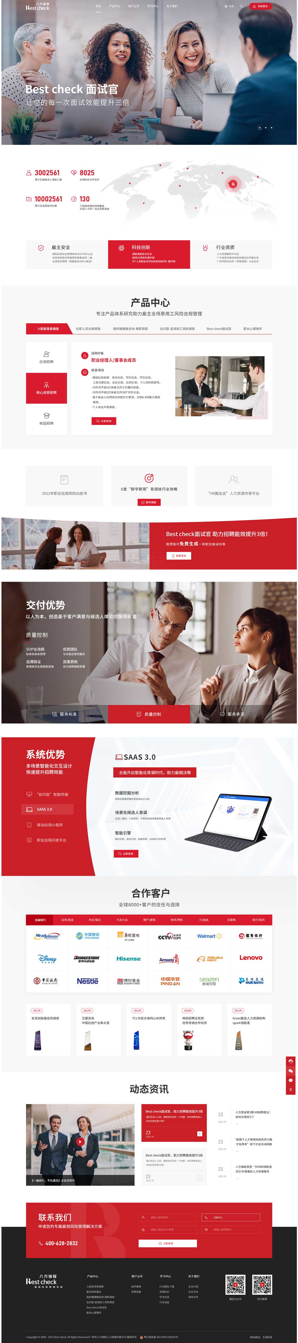 廣州市八方錦程人力資源有限公司成立于2008年,是中國最早成立的專注于企業雇傭風險管理的背景調查機構, 2019-2020年度廣東省“守合同重信用”企業。累計實施候選人調查超過300萬人,完成調查項目交付超過1000萬次,并且擁有8000多家國內外知名企業服務經驗。