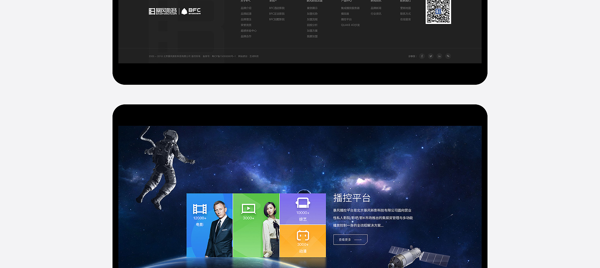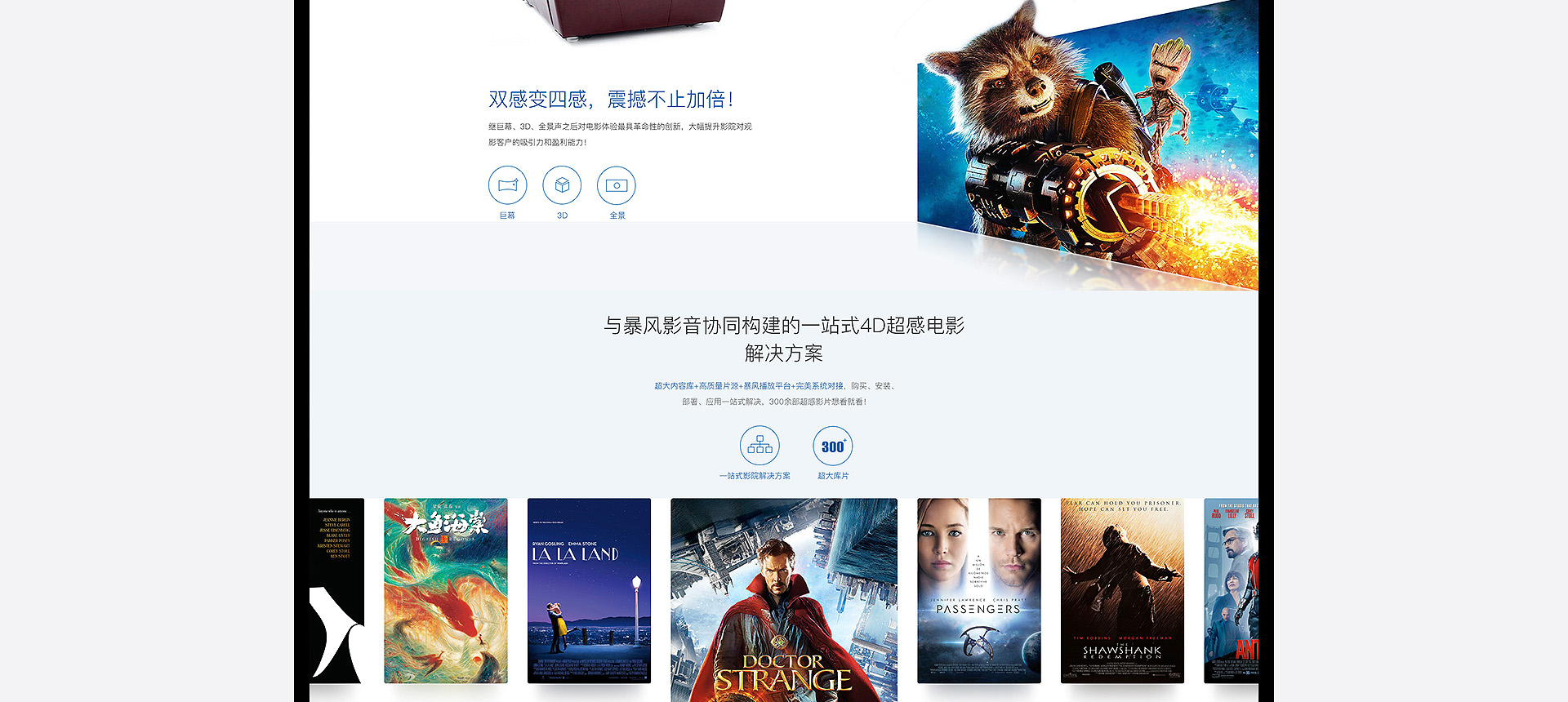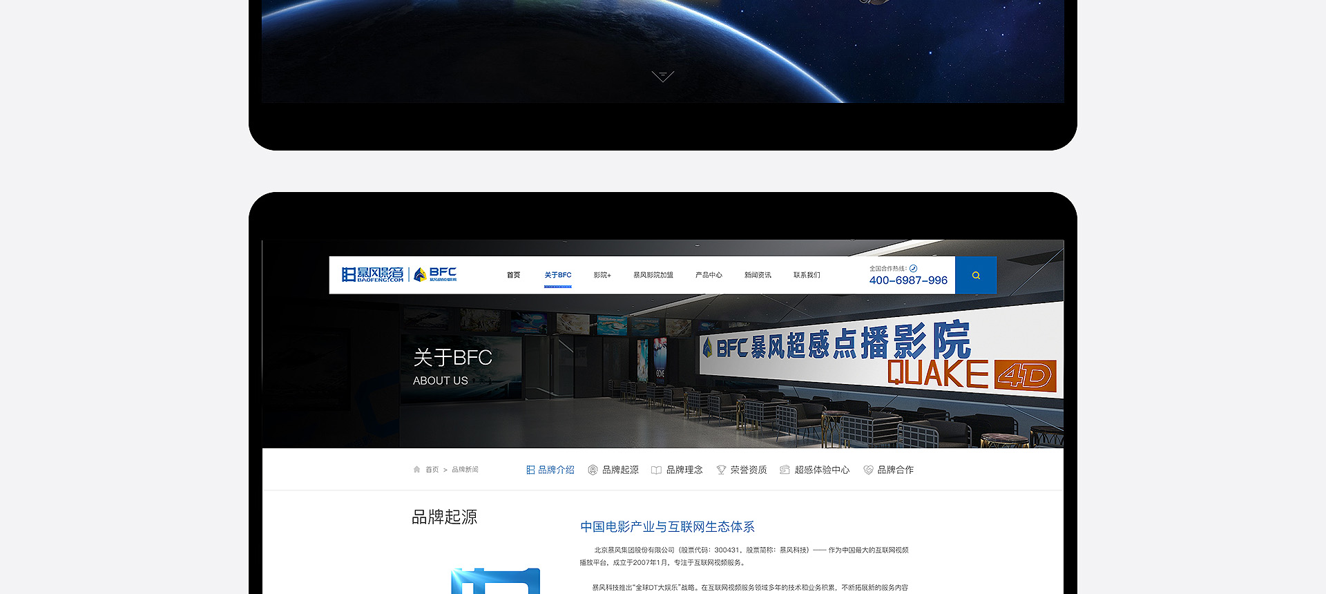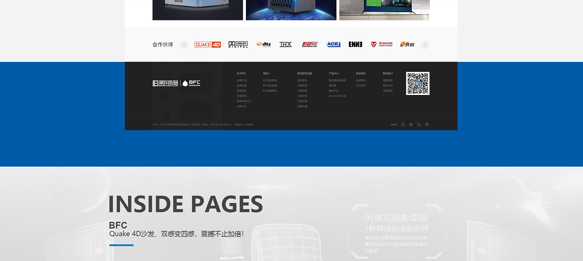 依托暴風科技品牌、強大版權儲備和三億線上觀影用戶,BFC暴風超感影院是面向追求極致感官體驗的觀影人群推出的高端品牌。BFC暴風超感影院以全廳杜比全景聲音響、專業聲學設計、高亮3D投影和QUAKE超感沙發等獨家研發的產品為核心特色,獲得更舒適、更震撼觀影體驗的極致享受的視聽服務。 BFC暴風超感影院秉承“通過...