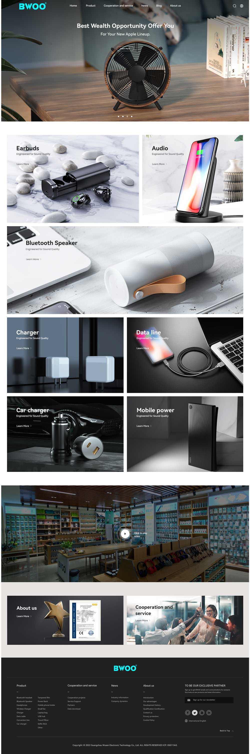 BWOO是銷售工貿一體化的高新技術企業,我們自有精益制造的工廠、研發設計、客戶服務團隊,始終堅持科技引領,精益創新,誠信經營,合作共贏的理念,與全球100多個國家和地區上千家客戶 建立了互利共贏關系。我們建立了完整精良的產品質量控制體系,每一件產品都經過嚴格檢測,保證了BWOO出品,必是精品。2012年已經通過最新的ISO-90001體系認證。 2020年,BWOO啟動全球品牌戰略,尋找最優的合作伙伴共同發展。