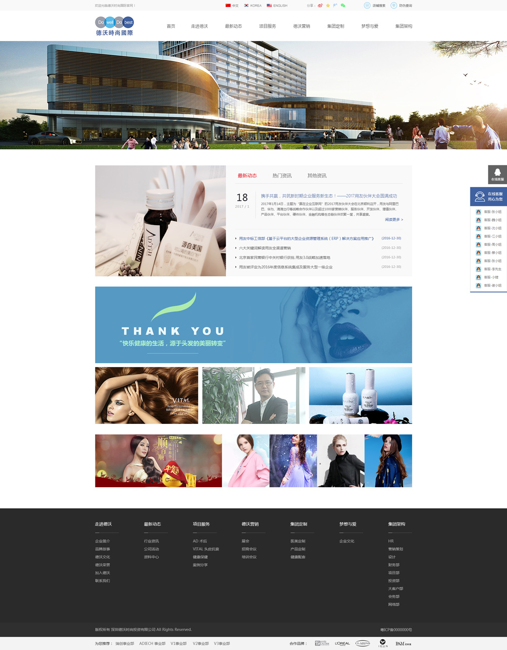 德沃公司通過海外綜合平臺資源整合,不斷加強與各美容運營機構的聯合導入超前管理、運營及贏利模式,立足中國美容市場現狀,通過獨特產品、項目、卓越團隊、完善訓練、有效市場策劃與全方位售后服務理念等,幫助美容機構不斷成長發展。