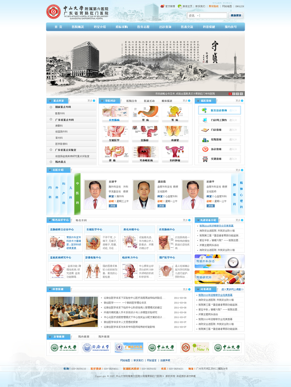 根據廣州市-中山大學市校戰略合作計劃框架和廣東省衛生發展戰略,中山六院人實踐著孫中山先生“博學、審問、慎思、明辨、篤行”的精神,恪行“守·真”院訓,鞭策著自己以嶄新的精神風貌,以更高超的醫術、優質的服務,努力把中山六院建設成為國內一流、國際知名的現代化三級甲等醫院,并打造全國最有影響力的胃腸肛門專科醫院,竭誠為患者提供溫馨、優質、高效的醫療保健服務。