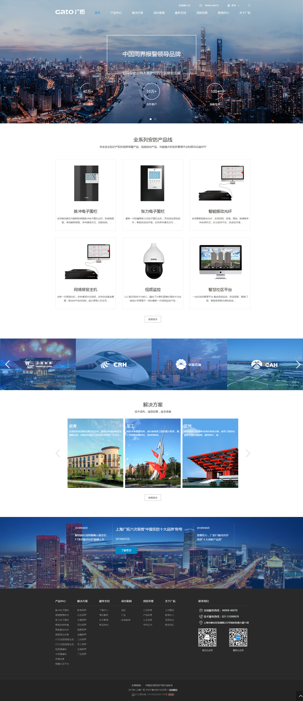 廣拓在全球擁有近1000萬的用戶群體。在中國,廣拓客戶遍布32個省市和地區,營銷服務網絡覆蓋全國,已成功服務滬杭/京滬高鐵、世博會、釣魚臺國賓館、國家電網、印鈔造幣集團等眾多國家重點工程。在海外,廣拓產品遠銷南美、非洲、中東、東南亞等地區,已應用于中國駐利比亞和埃塞俄比亞大使館、非洲中石化油庫、阿瓦薩工業園等大型安防工程。