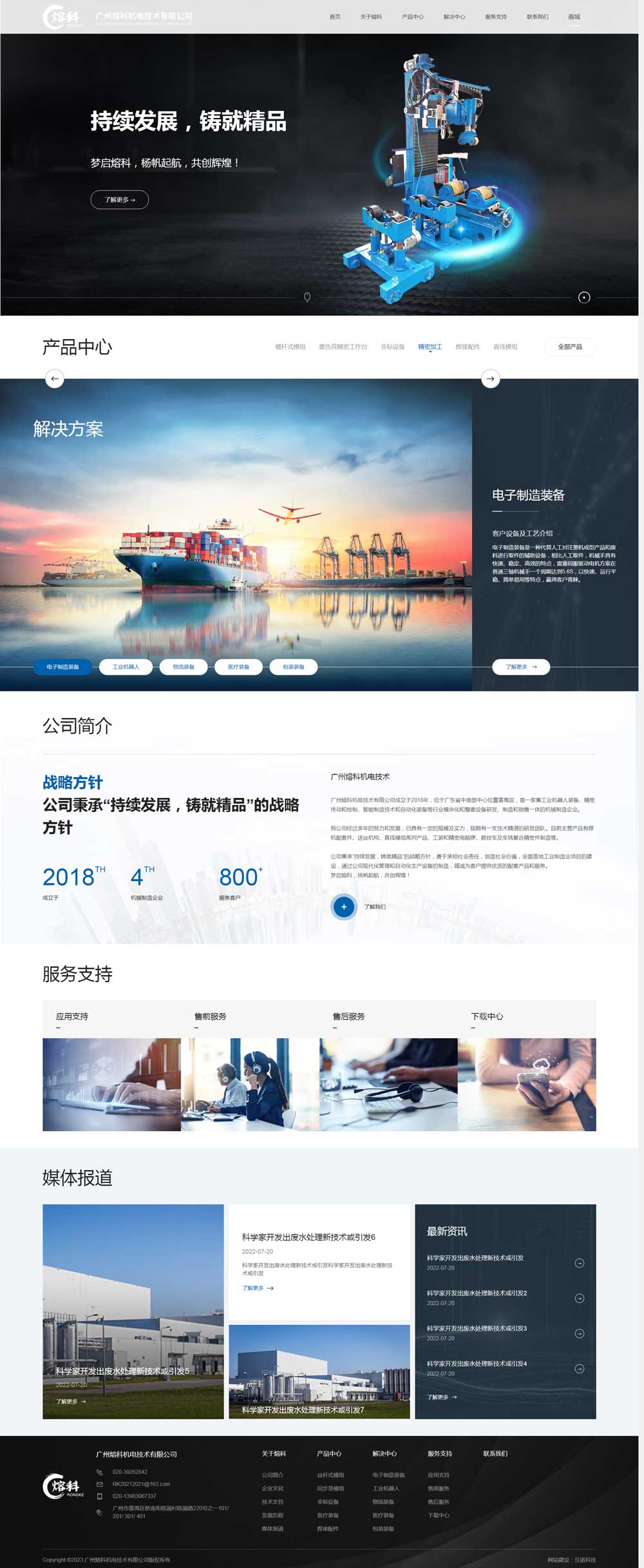 廣州熔科機電技術有限公司成立于2018年,位于廣東省中南部中心位置番禺區,是一家集工業機器人裝備、精密傳動和控制、智能制造技術和自動化裝備等行業模塊化和整套設備研發、制造和銷售一體的機械制造企業。