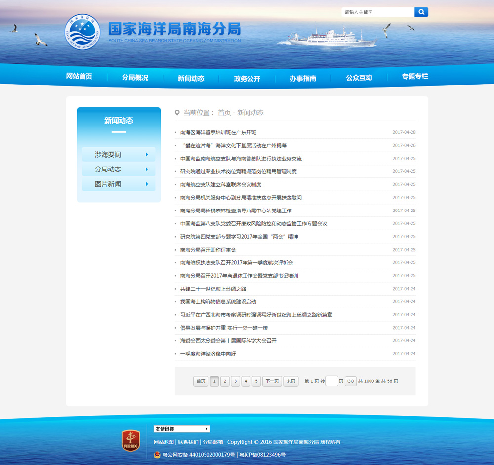 國家海洋南海分局成立于1965年3月18日,是國家海洋局設在廣州的南海區海洋行政管理機構。南海海區現設有中國海監南海總隊。分局擁有海洋水文、化學、地質、氣象、生物、遙測浮標、海洋計量檢定、海洋環境質量評價、海洋信息服務等專業隊伍及先進的儀器設備,擁有遍布兩廣沿海的觀測站網和遙測海洋環境數據浮標網。有裝備比較先進的“中國海監”船、遠洋考察船。