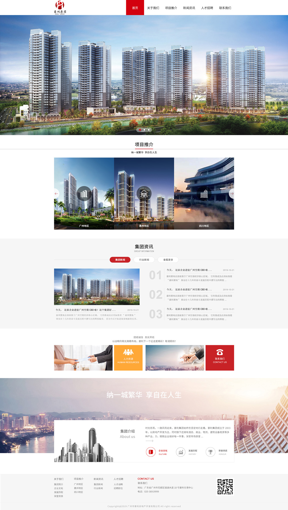 房地產作為集團的主要支柱產業,自2003年以來,成功開發了諸多項目,深受廣州各大官方媒體和市場的好評,一次又一次掀起了熱銷神話。比如金城廣場、金鵬花園、金鑼灣購物廣場、東豪大廈、半山百合豪園、金豪雅苑、豪利幸福里、豪利花園......憑借出色的品質和優質的服務,深受市場厚愛。