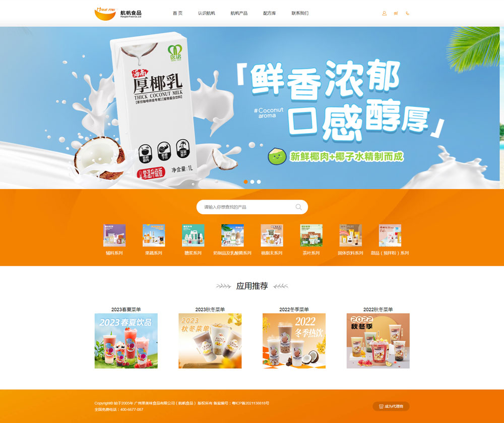 航帆食品始創(chuàng)于2005年,總部位于中國(guó)廣州,是領(lǐng)航集團(tuán)旗下專注于高端茶飲研制和整合服務(wù)的子公司。十八載的耕耘,秉承“讓茶飲更美味更健康”的初心和使命,強(qiáng)化創(chuàng)新能力,持續(xù)完善產(chǎn)業(yè)生態(tài),旗下?lián)碛小昂椒薄ⅰ案蝗晏亍薄ⅰ般懼Z”、“冰芭蕾”。“滋樂(lè)達(dá)”、“秉味”六大原料品牌,為合作商提供茶飲原料。技術(shù)、培訓(xùn)、運(yùn)營(yíng)營(yíng)銷等全方位服務(wù)支持。