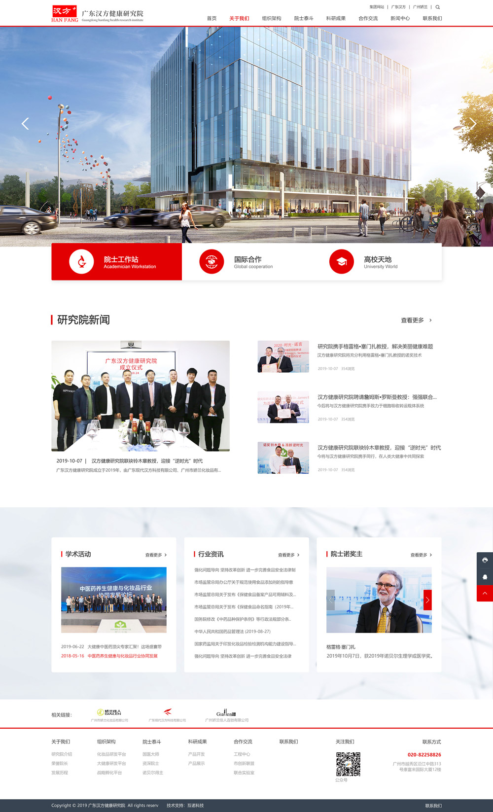 廣東漢方健康研究( 英文名稱:Guangdong hanfang health research institute )于 2019 年10月正式成立,本院是由廣東現代漢方科技有限公司、廣州市嬌蘭化妝品有限公司共同出資舉辦的一家聚焦美麗大健康的研究型專業平臺。本研究院產學研一體化,聘請中國科學院資深院士陳可冀院士為名譽院長,致力于開展前沿科技研究,與國際先進技術接軌,打造國際一流的健康和美麗產品,實現科技引領未來。