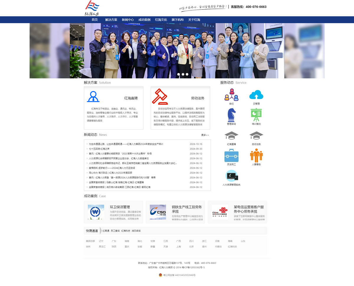 廣州市互諾計算機科技有限公司(簡稱:互諾科技)成立于2005年,是成熟的整合式互聯(lián)網(wǎng)應(yīng)用服務(wù)商,廣東省認證“雙軟”及“高新技術(shù)”企業(yè)。多年來始終致力于創(chuàng)造專業(yè)化、個性化、品牌化的網(wǎng)絡(luò)服務(wù)。在本次與廣州紅海人力資源集團股份有限公司的項目合作中,我們按照流程針對廣州紅海人力資源集團股份有限公司所在的人力資源行業(yè)做了深度的調(diào)研和了解,針對客戶的訴求做了深度的分析后,提供了網(wǎng)站建設(shè)服務(wù),也同時令我們在針對人力資源行業(yè)的網(wǎng)站制作中積累了更多的經(jīng)驗,并獲得了客戶的認可,建立了長期合作的友好伙伴關(guān)系。