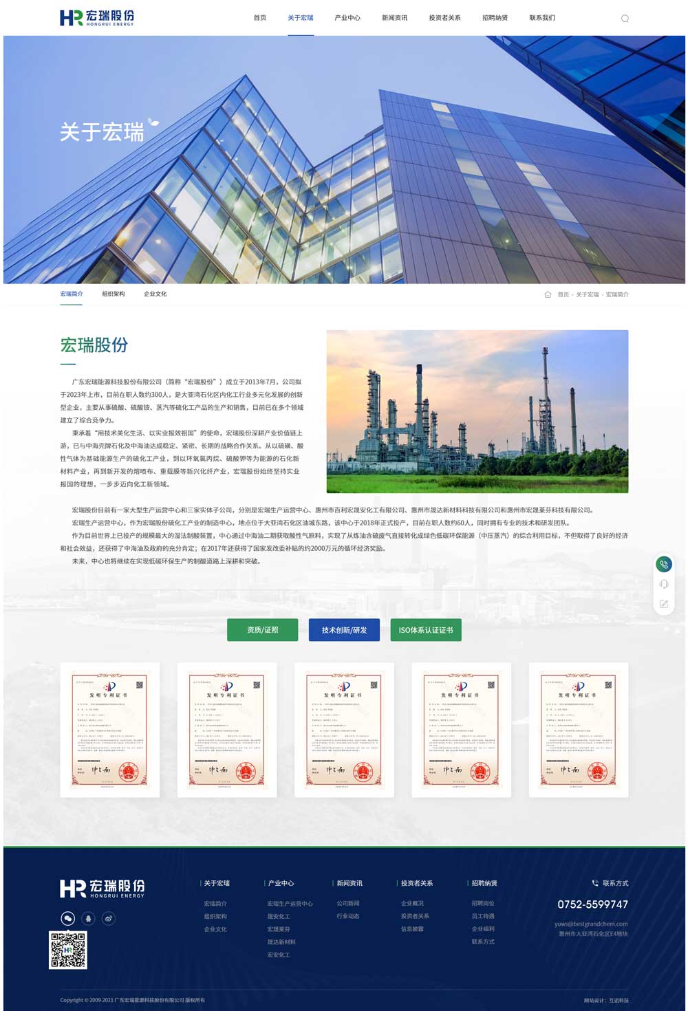 廣東宏瑞能源科技股份有限公司(簡稱“宏瑞股份”、“公司”)成立于2013年7月,坐落于大亞灣石化區,公司及其下屬子公司目前在職人數約300人。公司系一家以硫化工為業務主線,以循環經濟和園區經濟為業務特色的現代化化工企業,公司始終堅持以技術進步推動轉型升級,以綠色化學實現可持續發展,主營業務由基礎化工逐步向覆蓋精細化工與新材料進行拓展。