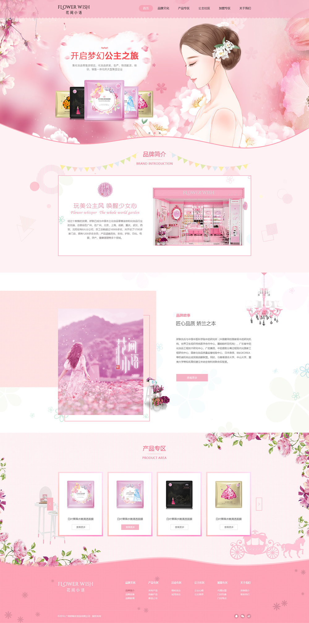 花間小語以“玩美公主夢、喚醒少女心”為品牌訴求, 為年輕消費群體提供全新專業產品和優質服務。