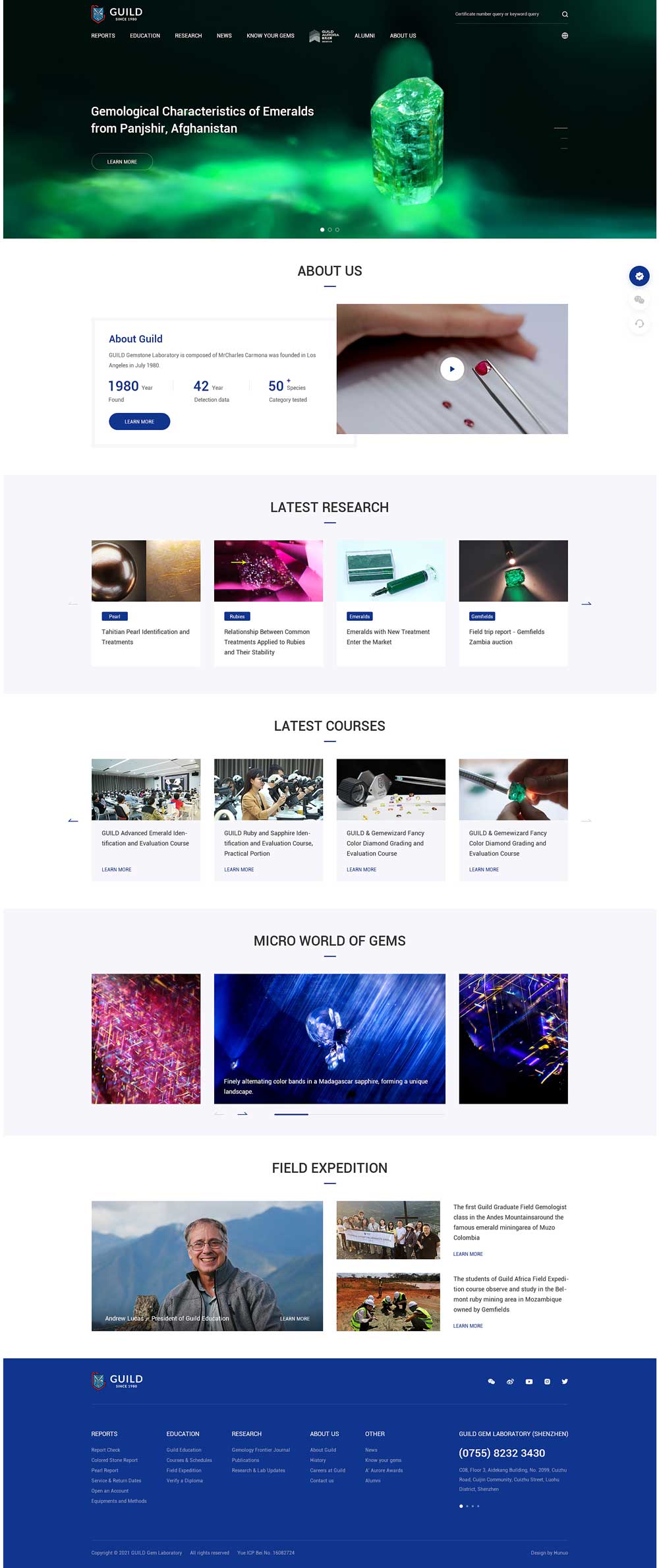 GUILD Gemstone Laboratory is composed of Mr Charles Carmona was founded in Los Ange-les in July 1980. For more than 40 years, GUILD Gem Lab has always been committed to theresearch, identification, science popularization and promotion of color gemstones, and hasrich experience and massive achievements in the field of building a standardized system inthe color gem market.