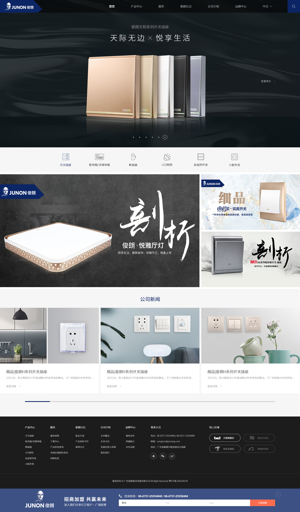 同時,公司充分發揮專注于開關插座的研發與生產,年產開關插座100000000只,采用優質原材料,通過使用先進的設備和精益化的生產工序,以及嚴格的品質監管,實現“高效生產、把控質量”的目標,令開關插座日產量高達150萬只,致力于為每一位“俊朗用戶”制造安全實用的開關插座,提供高性價比的優質產品。