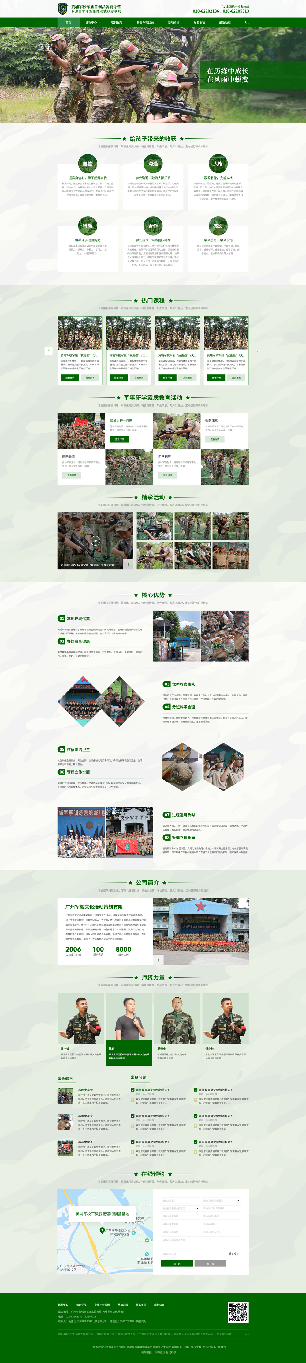 公司旗下“黃埔我更強(qiáng)”軍事對(duì)抗?fàn)I?特種兵夏令營(yíng)始于2006年,致力于打造廣東地區(qū)第一流大中小學(xué)生素質(zhì)培訓(xùn)品牌,旨在全面提升青少年綜合素質(zhì),培養(yǎng)青少年自信、感恩、豁達(dá)、堅(jiān)強(qiáng)、勇敢、獨(dú)立做人的優(yōu)秀品質(zhì);繼續(xù)秉承以往的優(yōu)秀經(jīng)驗(yàn),針對(duì)當(dāng)前青少年教育的實(shí)際情況,不斷推陳出新,通過(guò)軍營(yíng)角色體驗(yàn)、體驗(yàn)式(拓展)培訓(xùn)、心理疏導(dǎo)、文化輔導(dǎo)、才藝特訓(xùn)等方式,把素質(zhì)教育與軍事體驗(yàn)有機(jī)結(jié)合,真正做到以訓(xùn)促管、以教促養(yǎng)提升青少年自身素質(zhì),實(shí)現(xiàn)成人成才目標(biāo),給家長(zhǎng)滿(mǎn)意回饋。