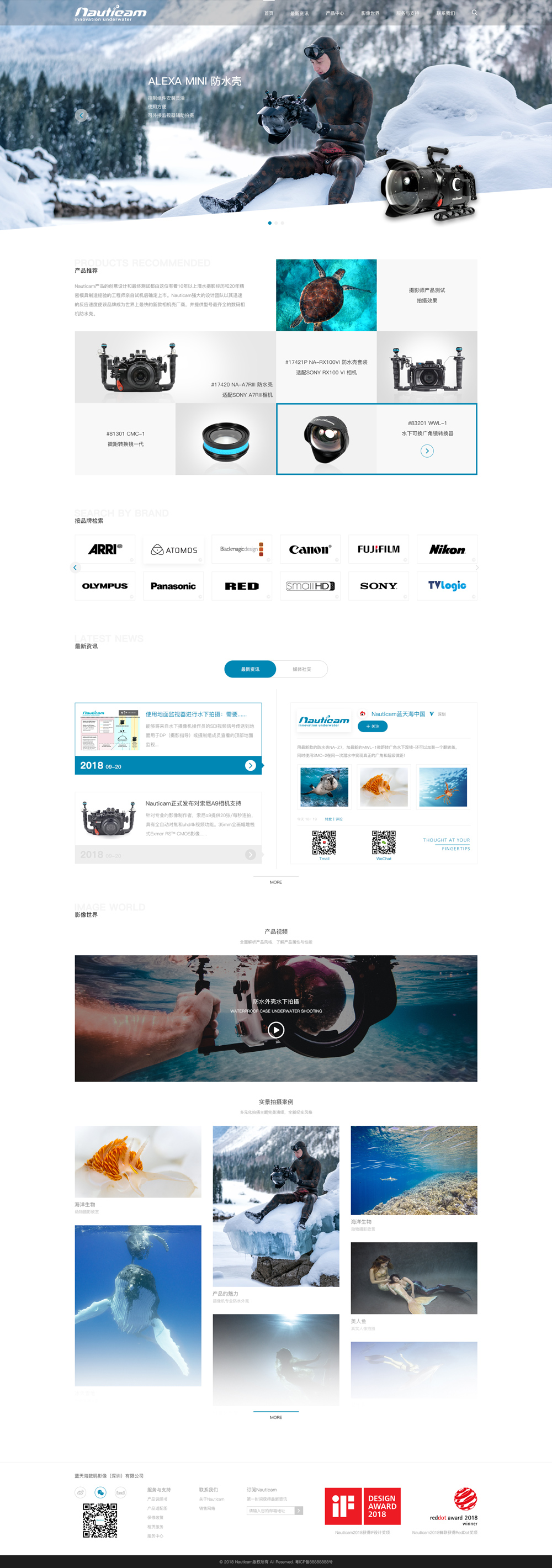 Nauticam是香港品牌,中國首家制造水下攝影鋁合金防水殼的廠商。公司成立于2008年,短短9年時間已經(jīng)在全球市場上占據(jù)潛水相機(jī)和攝影機(jī)殼的領(lǐng)先地位,其中Nauticam的單反相機(jī)殼占了全世界市場銷量的50%左右。