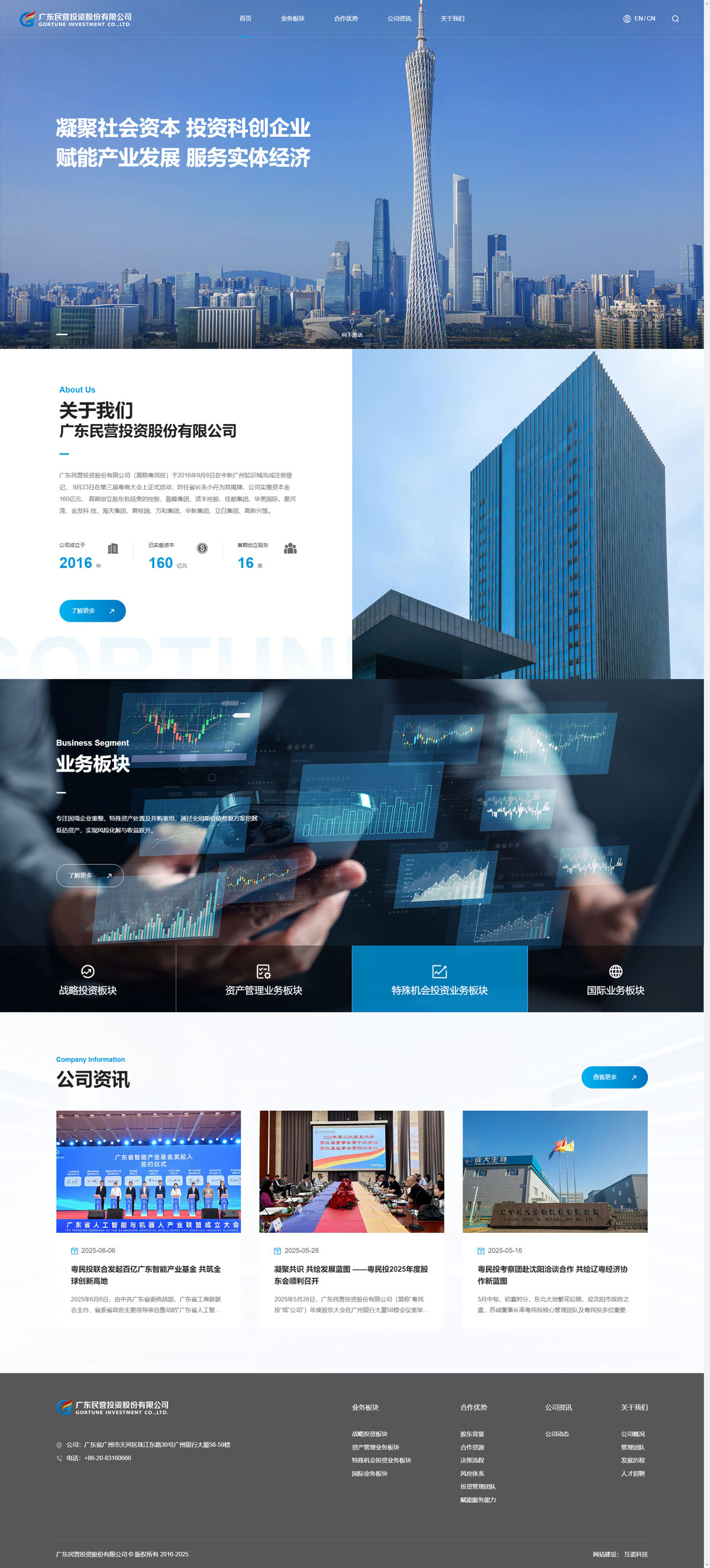 在數字化浪潮席卷各行各業的當下,企業官網已成為展示品牌形象、傳遞核心價值的重要窗口。作為深耕互聯網服務領域近二十年的專業服務商,互諾科技(廣州市互諾計算機科技有限公司)憑借扎實的技術積累與定制化服務能力,成功為廣東民營投資股份有限公司(簡稱粵民投)打造了兼具專業性與實用性的企業官網,成為連接實業投資與數字化展示的重要紐帶。