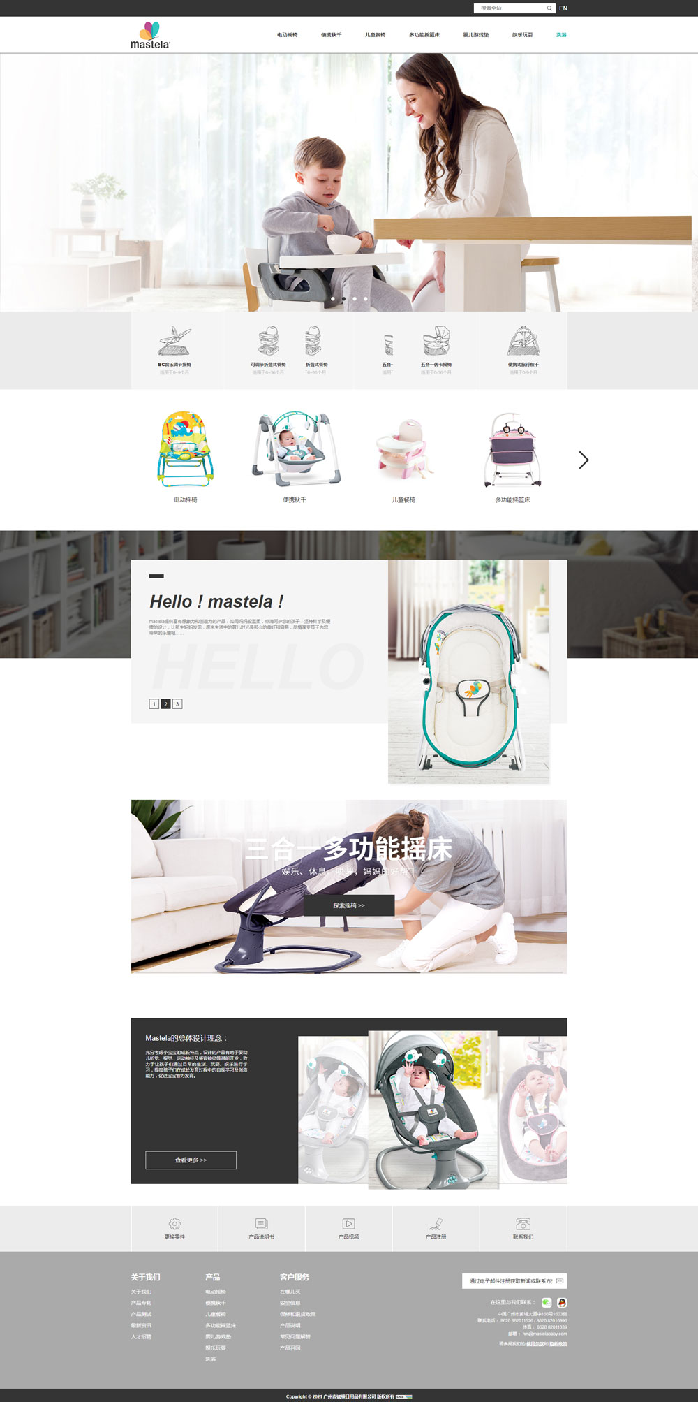廣州市麥鍶頓日用品有限公司(Mastela)成立于2005年,專業從事嬰兒用品開發、生產以及銷售。我們專業于嬰幼兒搖椅、嬰兒游戲墊、洗澡椅、益智玩具、兒童餐椅、嬰兒學步車等系列產品,讓孩子們通過日常的玩耍及娛樂中得到學習,我們致力于為您的孩子帶來樂趣和智慧。
