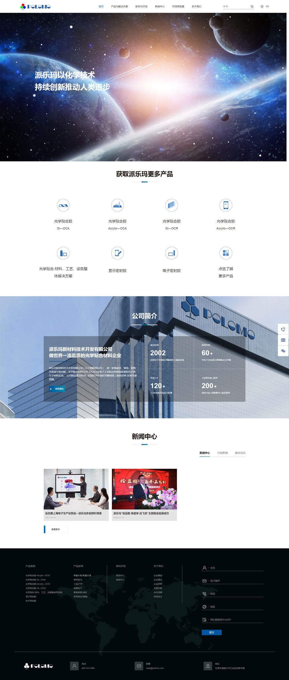 東莞市派樂瑪新材料技術開發有限公司(以下簡稱派樂瑪),是一家集研發、制造、銷售光電顯示密封膠,光學貼合材料OCR /OCA以及電子工業粘合劑的國家高新技術高分子材料企業。公司始運營2002年, 總部位于中國經濟腹地珠三角前沿地-東莞市道滘鎮。并于2021年成立全資子公司—派樂瑪光學薄膜( 松山湖 )有限公司,專注于高性能OCA產品的研發制造。公司秉承“以化學技術持續創新推動人類進步”的企業使命,深耕于光電顯示屏幕貼合技術,并延伸于智能汽車、軍工、航空、教育、商用、消費等制造領域。核心技術產品涵蓋了不同顯示屏幕技術觸控的光學貼合及顯示屏幕密封膠的整體解決方案。
