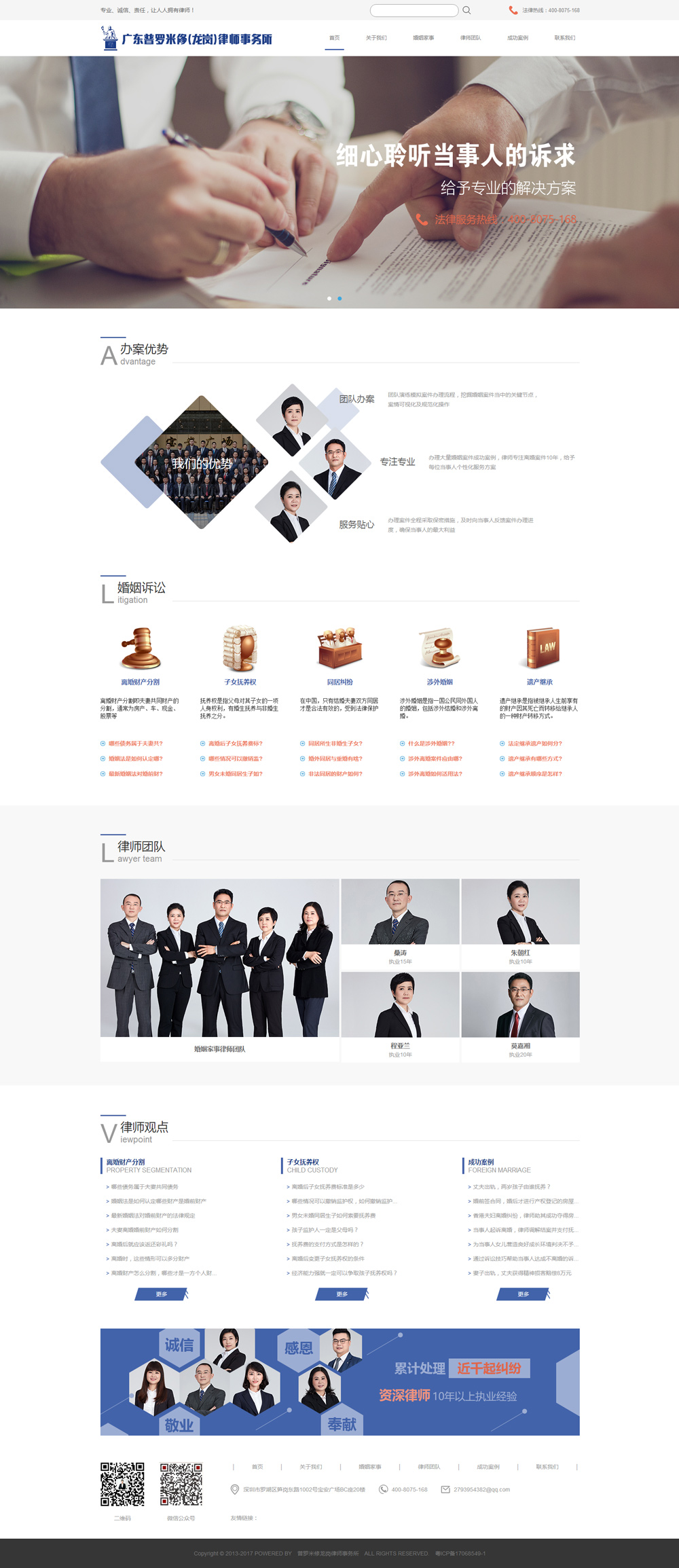 本團隊擅長離婚訴訟、撫養權糾紛、離婚撫養權、離婚賠償、遺產繼承等各類婚姻家事法律服務。豐富的經驗讓我們在辦案中考慮的更加周全,能為當事人選擇最好的解決方案;團隊協作精神讓我們在辦案中提高效率,保證用最快的速度幫助當事人解決難題;滿滿的人文情懷讓我們尊重當事人的需求,保護當事人的隱私,最大限度降低案件對當事人及其家人生活產生的不良影響。