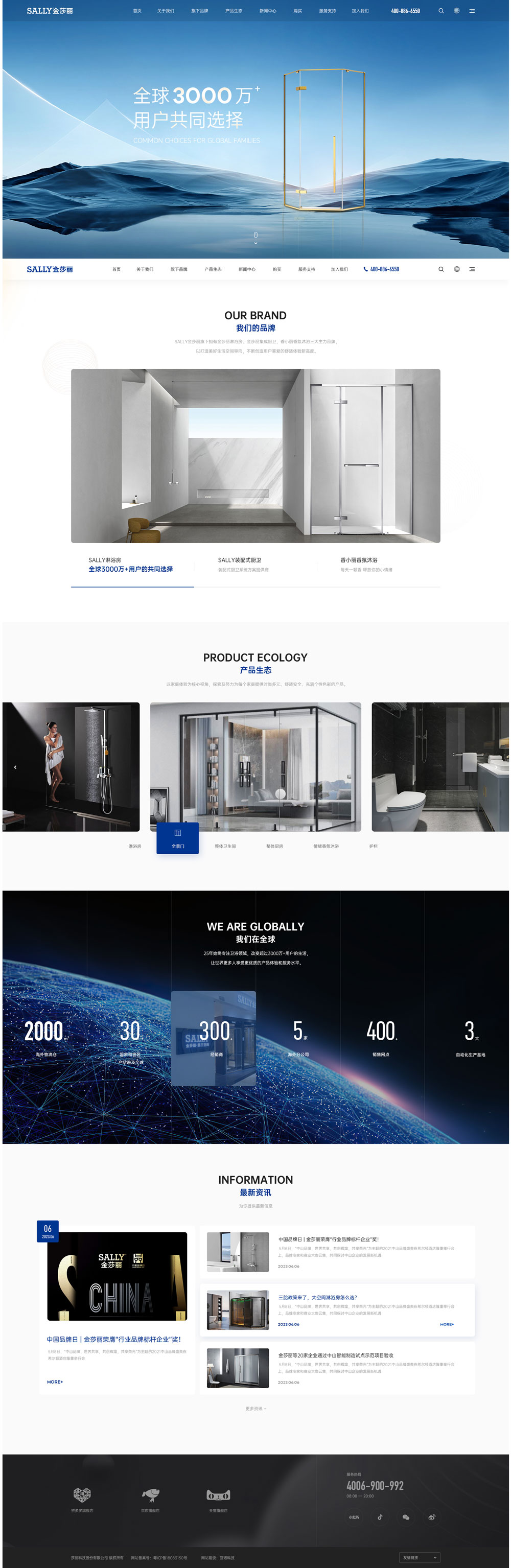 莎麗科技股份有限公司創(chuàng)立于1998年,是以淋浴房、整體衛(wèi)生間、全景門香氛沐浴、隱形欄桿的研發(fā)、制造、營銷、服務(wù)為一體的專業(yè)現(xiàn)代化企業(yè)。