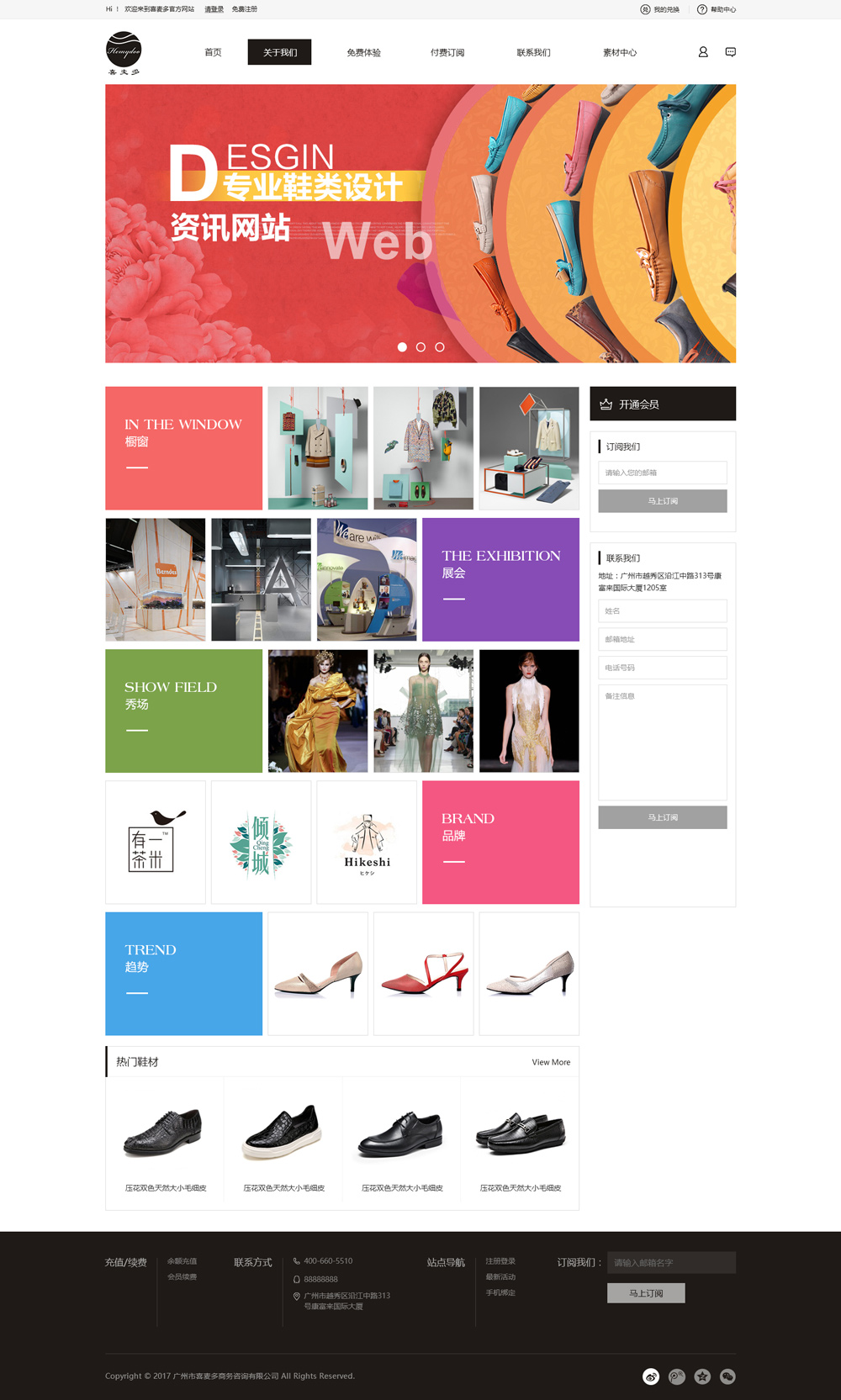喜麥多鞋網(www.hmdshoes.com)是廣州市喜麥多商務咨詢有限公司屬下的鞋類設計資訊信息平臺,可電腦端和手機端登錄使用。特點如下: