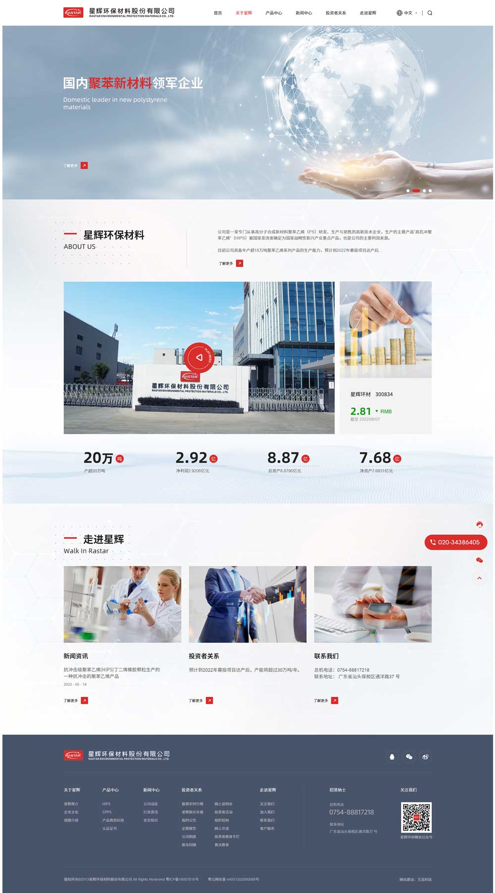 星輝環保材料是一家專門從事高分子合成材料聚苯乙烯(PS)研發、生產與銷售的高新技術企業,經過十幾年的行業積累和快速發展,目前公司具備年產35萬噸聚苯乙烯系列產品的生產能力,系技術水平較為領先的聚苯乙烯生產企業,為國內華南地區聚苯乙烯行業生產規模最大的公司。2022年1月,公司在深圳證券交易所創業板成功上市(股票簡稱:星輝環材;股票代碼:300834)。
