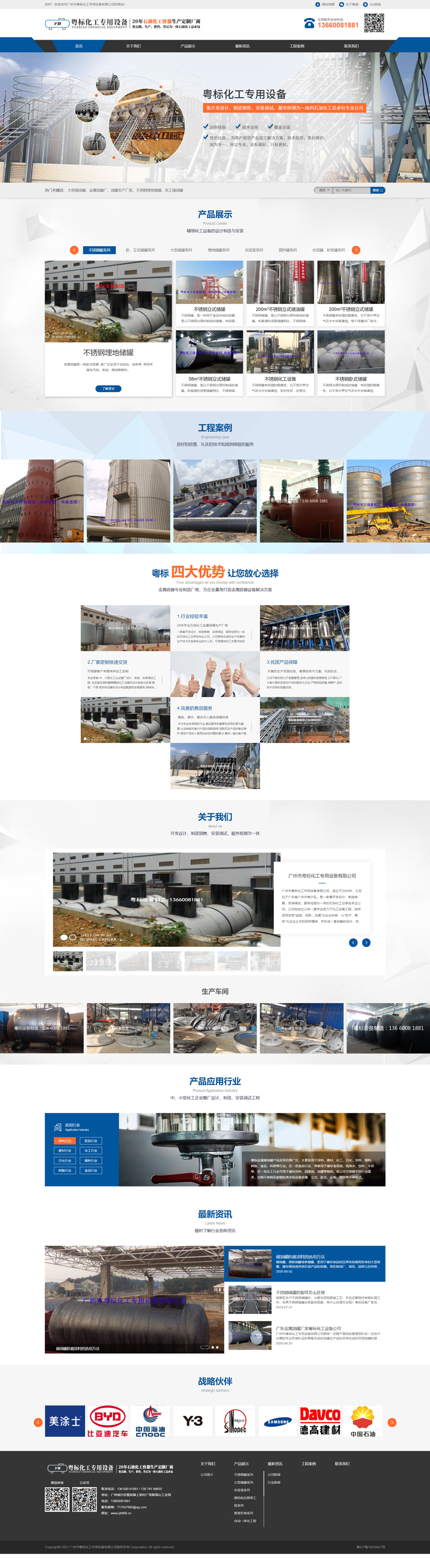 廣州市粵標化工專用設備有限公司是一家集開發設計、制造銷售、安裝調試、服務檢測為一體的石油化工總承包專業公司。公司自創立以來一直專業致力于化工設備工程;始終堅持發揚"誠信、創新、溝通"為企業宗旨,以"技術、服務"為立業之本的團體精神,并形成一套完整的設計、安裝、調試、培訓、維護一站式服務體系。其服務內容包括:中、小型化工企業整廠設計、制造、安裝調試工程;反應釜及攪拌罐等精細化工設備的設計制造與安裝;碳鋼、不銹鋼非標設備的設計制造配套和安裝服務;鋼結構、網架、加油站設計制作、工藝管線配套服務;雙層油罐、埋地儲罐、立臥式型儲罐、蓄冷水罐、水泥罐、砂漿罐、水處理設備、反應釜、攪拌釜、不銹鋼及碳鋼各類非標設備容器。