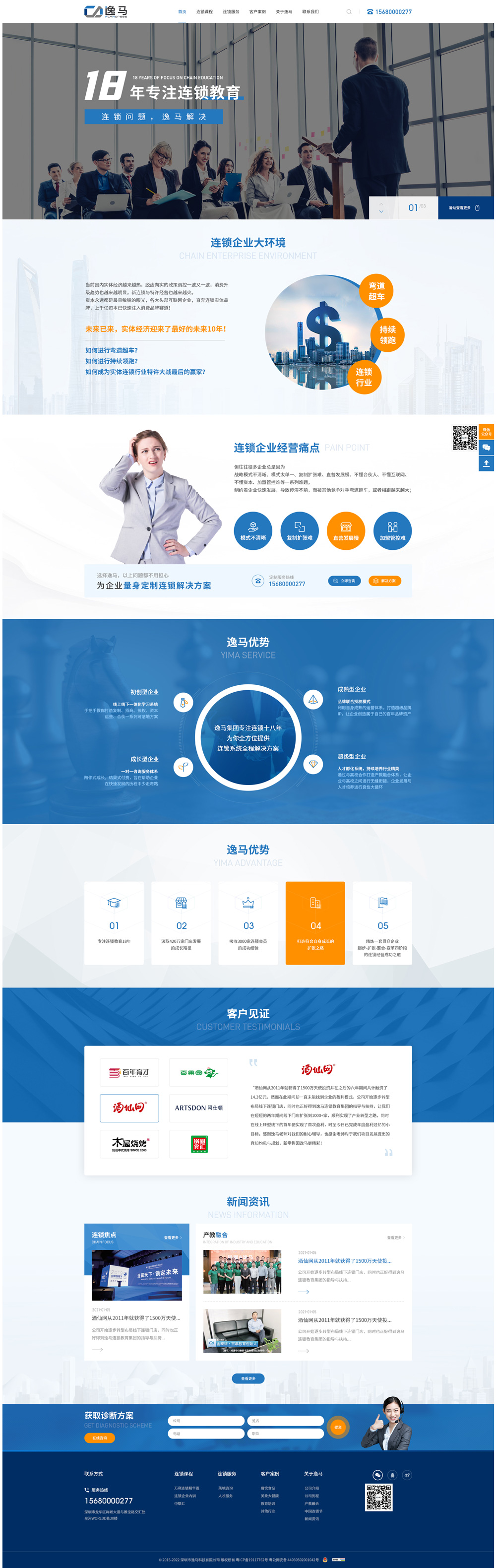 逸馬連鎖教育集團(tuán)創(chuàng)立于2004年,集團(tuán)下設(shè)逸馬科技、逸馬品牌連鎖(產(chǎn)教融合)、阿拉丁品牌授權(quán)、逸馬云連鎖、馬幫門(mén)店合伙人、快馬特許招商、逸馬投資、學(xué)到連鎖、逸馬歐洲、步步領(lǐng)先等機(jī)構(gòu),是集研究、教育、咨詢、培訓(xùn)、投資于一體的全球領(lǐng)先的連鎖產(chǎn)業(yè)服務(wù)平臺(tái),18年出版連鎖專業(yè)研究書(shū)籍25套,服務(wù)了420萬(wàn)家連鎖門(mén)店,6萬(wàn)家連鎖學(xué)員,服務(wù)企業(yè)總營(yíng)收達(dá)到3萬(wàn)億元,為聯(lián)想、蘇寧、創(chuàng)維、怡亞通、三雄極光、雅迪、酒仙網(wǎng)、百果園、木屋燒烤、鴻翔藥業(yè)、鍋圈等近3萬(wàn)家企業(yè)服務(wù)的實(shí)戰(zhàn)經(jīng)驗(yàn),創(chuàng)立了中國(guó)連鎖全程運(yùn)營(yíng)系統(tǒng)的權(quán)威標(biāo)準(zhǔn)及連鎖第三次浪潮的數(shù)字化連鎖大系統(tǒng)。旗下有深圳、上海、北京、成都、武漢、香港、東京、愛(ài)爾蘭等30余家分公司、逸馬連鎖大學(xué)、雙創(chuàng)基地及孵化中心,貼身服務(wù)中聯(lián)匯企業(yè),孵化優(yōu)秀連鎖人才,提供就業(yè)創(chuàng)業(yè)平臺(tái),推動(dòng)連鎖產(chǎn)業(yè)創(chuàng)新升級(jí),構(gòu)建世界級(jí)的全網(wǎng)連鎖產(chǎn)業(yè)生態(tài)圈。