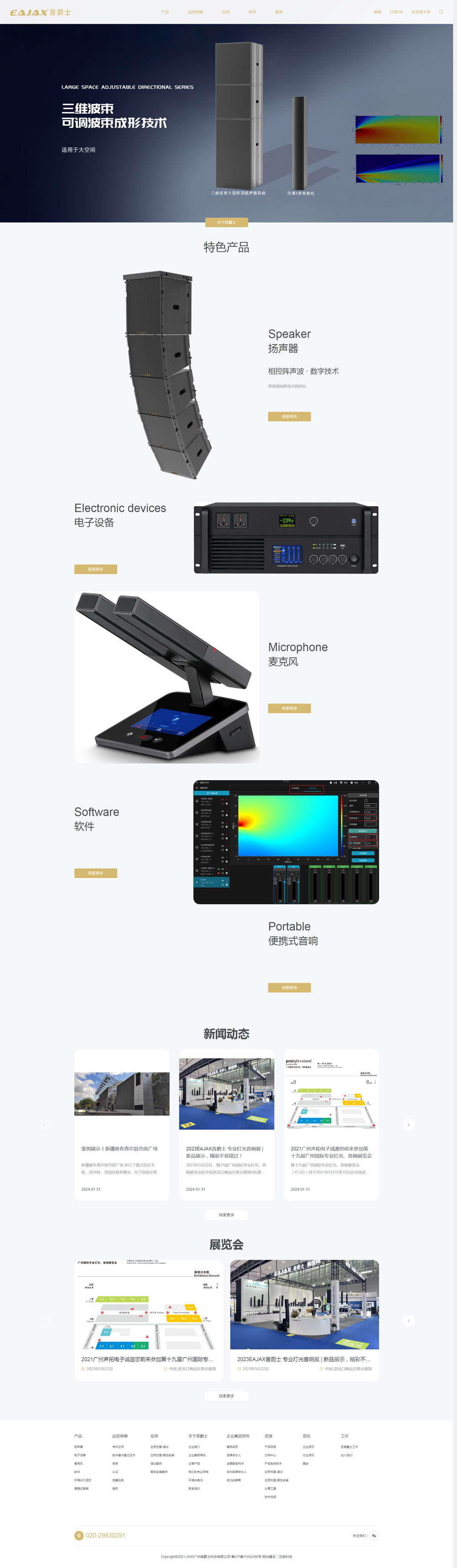 廣州音爵士科技有限公司是廣州市聲拓電子有限公司下屬企業(yè),運(yùn)營“音爵士EAJAX”品牌,聲拓(聲學(xué)領(lǐng)域開拓者)是一家在音頻設(shè)備領(lǐng)域擁有廣泛經(jīng)驗(yàn)和深厚技術(shù)實(shí)力的企業(yè)。作為一家集研發(fā)、制造、銷售和技術(shù)服務(wù)于一體的企業(yè),聲拓電子致力于創(chuàng)造卓越的音響解決方案,以滿足客戶對(duì)于高品質(zhì)聲音追求的需求。 主營產(chǎn)品:沉浸式擴(kuò)聲空間、揚(yáng)聲器音效算法系統(tǒng),聲波相控陣技術(shù)、恒定曲率、波場(chǎng)均勻技術(shù)、恒曲定向擴(kuò)聲產(chǎn)品,Dante/AES 67網(wǎng)絡(luò)音頻音響設(shè)備、專業(yè)音柱、可調(diào)指向性音柱、線性陣列音箱、專業(yè)音響、音頻矩陣、數(shù)字功放、話筒等設(shè)備。 “EAJAX 音爵士”品牌釋義: 音響行業(yè)的“爵士”。作為公司進(jìn)軍在音響領(lǐng)域第一個(gè)品牌,其使命是在音響領(lǐng)域要作出卓越貢獻(xiàn)、在市場(chǎng)上開疆?dāng)U土、立下赫赫戰(zhàn)功、為我國在國際音響行業(yè)打造出國際品牌,為公司立功、 封之為“爵”。 音爵士以用戶和合作伙伴為中心、以創(chuàng)新為動(dòng)力,以質(zhì)量為生命線,以社會(huì)責(zé)任為己任。 公司使命和愿景: 讓地球人美好的頻域和時(shí)域世界進(jìn)入太空!