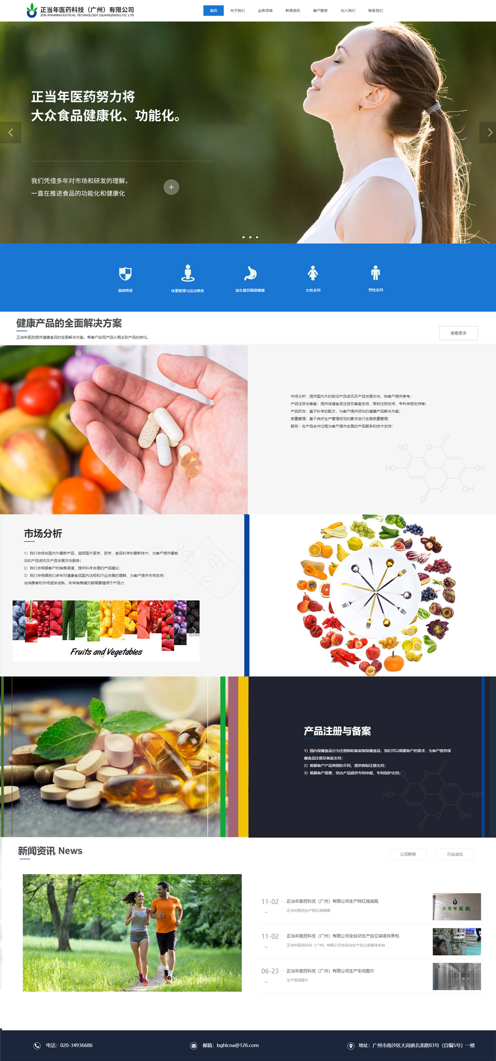 正當年醫藥提供健康食品的全面解決方案,幫客戶實現產品從概念到產品的轉化市場分析、產品注冊與備案、產品研發、產品生產、質量管理、服務。