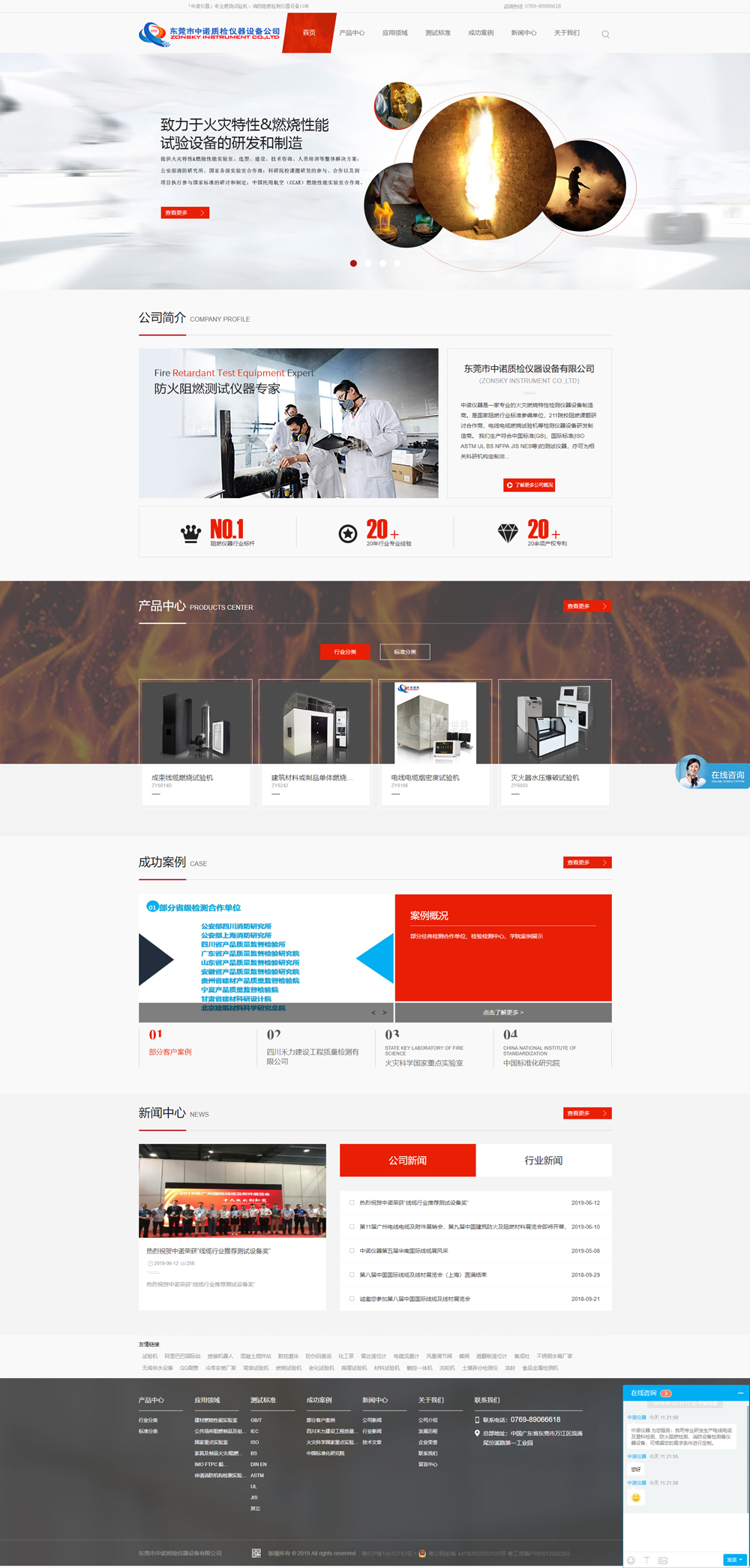 東莞市中諾質檢儀器設備有限公司(ZONSKY INSTRUMENT CO.,LTD)創建于2000年,是一家專業設計研發、生產、銷售防火阻燃檢測設備、集研發、生產于 一體的高新技術企業。經過全體同仁十多年的不懈努力,公司已發展成為該行業規模最大,技術領先,品種眾多,標準覆蓋最廣的中國知名企業。公司實行董事會領導下的總經理負責制,推行現代企業管理模式,實行7S管理,引進先進的企業管理ERP系統,公司于2008年通過ISO9001:2000版國際質量管理體系認證。公司參與了部分防火阻燃標準的起草工作,公司先后申請具有自主知識產權的軟件專利已達20余項。