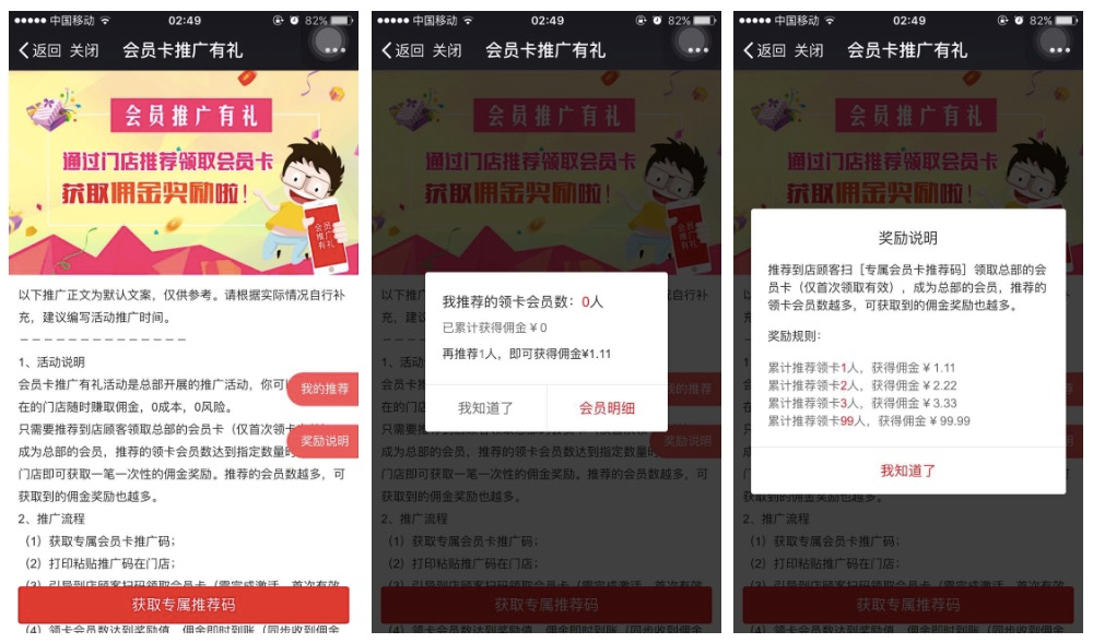 激勵:每累計推薦領卡會員數達到指定層級,門店均可獲得一次性的傭金獎勵。
