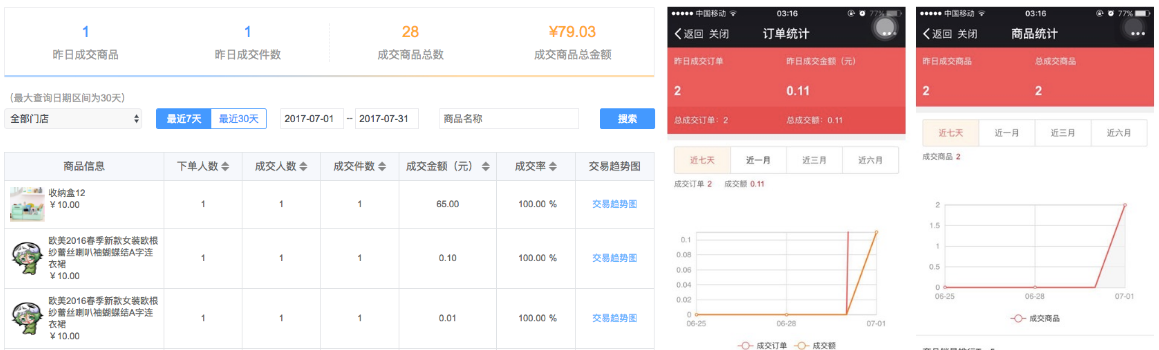 支持多維度數據統計: 訂單、商品、庫存、傭金、客戶等 |