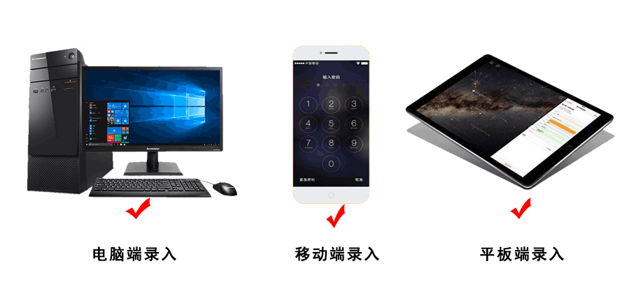 支持電腦、手持PDA、手機、平板等終端同步錄入;
