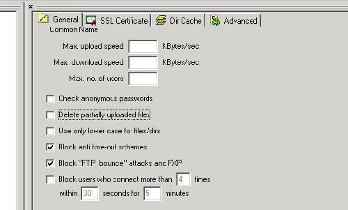 設置也很簡單,不過我們這里還是要迎合大眾胃口,說說關于serv-u的安全設置。