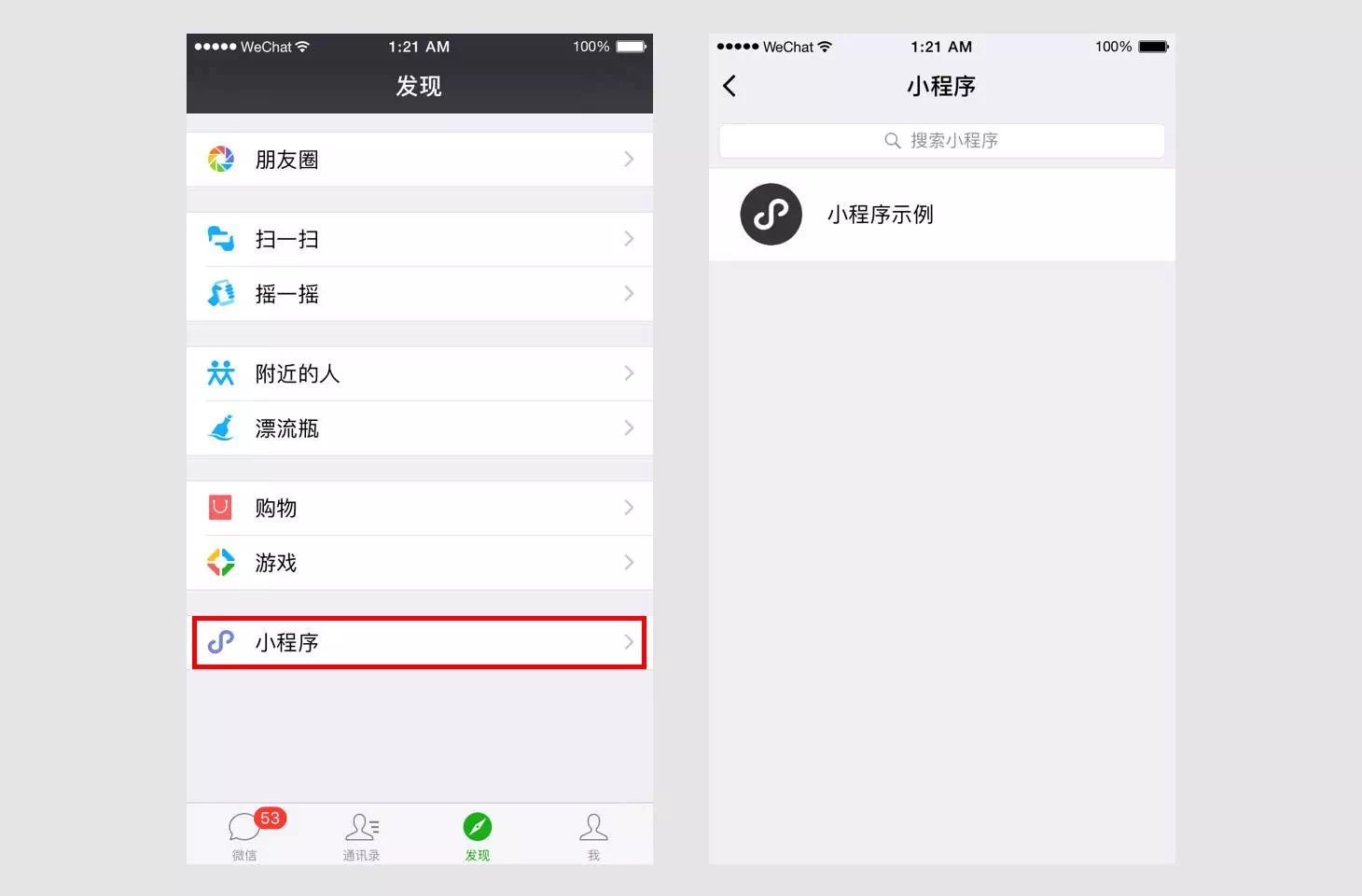 當用戶通過以上三種方式觸發過小程序后,該程序將會出現在“發現-小程序”里,可以說以上三種方式,目的就是為了讓自家的小程序留存在該二級入口。