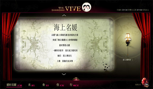 Shanghai Vive 是一個老上海化妝品品牌,現在被重新挖掘出來用于高端化妝品,該站點大量使用 Flash 以展示優雅和高尚的生活。