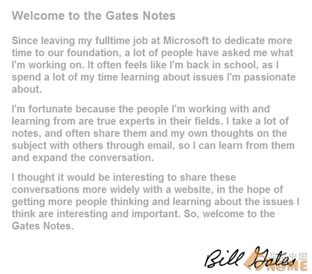 此外,另據了解,最近已經在Twitter上注冊帳號的蓋茨表示,他計劃將定期更新Gates Notes站點。